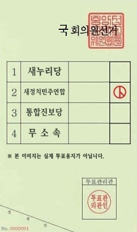 이번 국회의원 선거 때 두 장의 투표 용지를 받게 됩니다. 처음 한 장은 지역구 국회의원을 투표하는 것이고, 또 한 장은 비례 대표를 투표하는 것입니다. 꼭 두 장 다 받으셔서 대한민국 국민으로서 본인이 원하는 후보자에게 소중한 한 표 부탁드립니다.